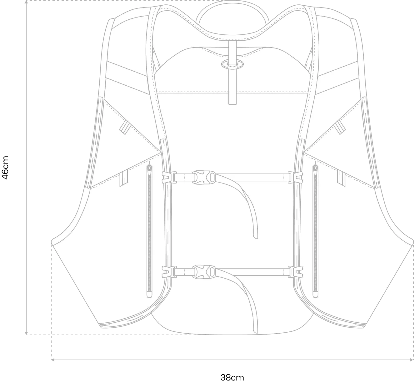 This 14 litre technical vest combines ultra-running accessibility with intelligent city organization, creating a hybrid solution that performs equally well on mountain trails and metro commutes. Strategic storage placement enables unrestricted movement while securing daily essentials—laptop, hydration, nutrition, and personal items — without the bulk typical of traditional backpacks. *Flasks not included